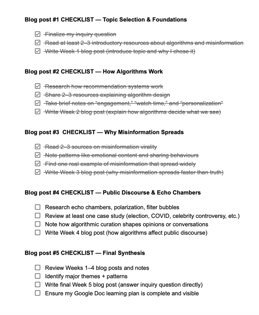For this blog post research, I focused on the part of my inquiry question that asks why misinformation spreads more quickly than accurate content and how this affects public discourse. Before looking into this I had the idea that the explanation was more about how people choose to post false information and people being gullible to what they see, but it turned out to be more connected to how platforms reward the content like I mentioned in my last blog post.