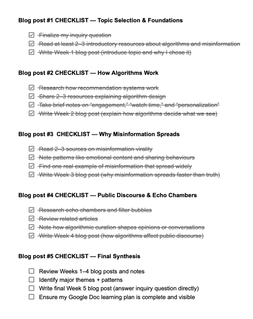 This week, I shifted my focus from why misinformation spread to the bigger question of how this actually affects and shapes public discourse, meaning the shared conversations and debates regarding an event or topic. I realized this week that when platforms amplify certain types of content, they indirectly shape what the āpublic conversationā is.